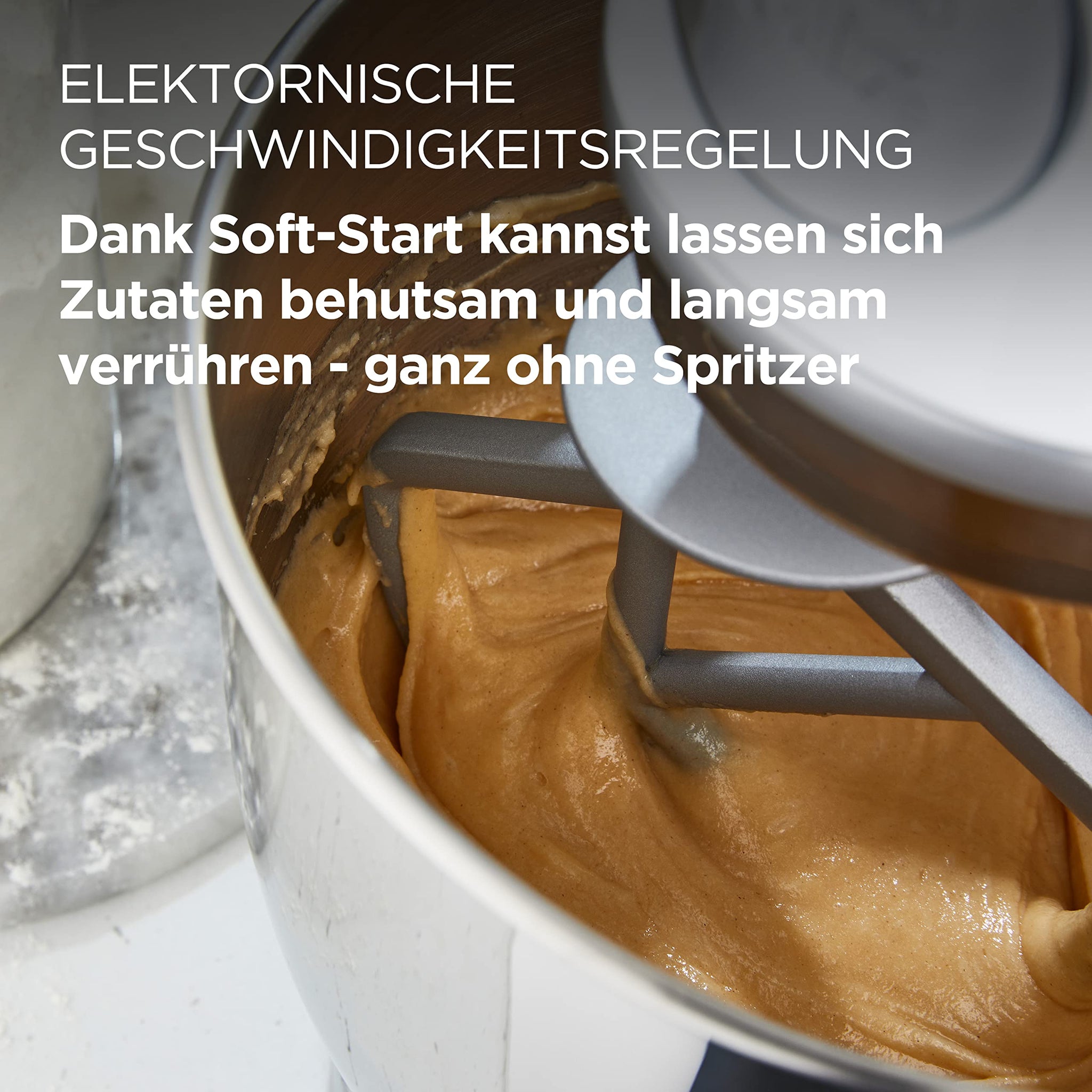 - LEISTUNGSSTARK: Mit dem langlebigen 1.000 Watt-Motor wird die Rührgeschwindigkeit auch unter starker Belastung beibehalten – die Rührschüssel mit Spritzschutz ermöglicht sauberes Arbeiten