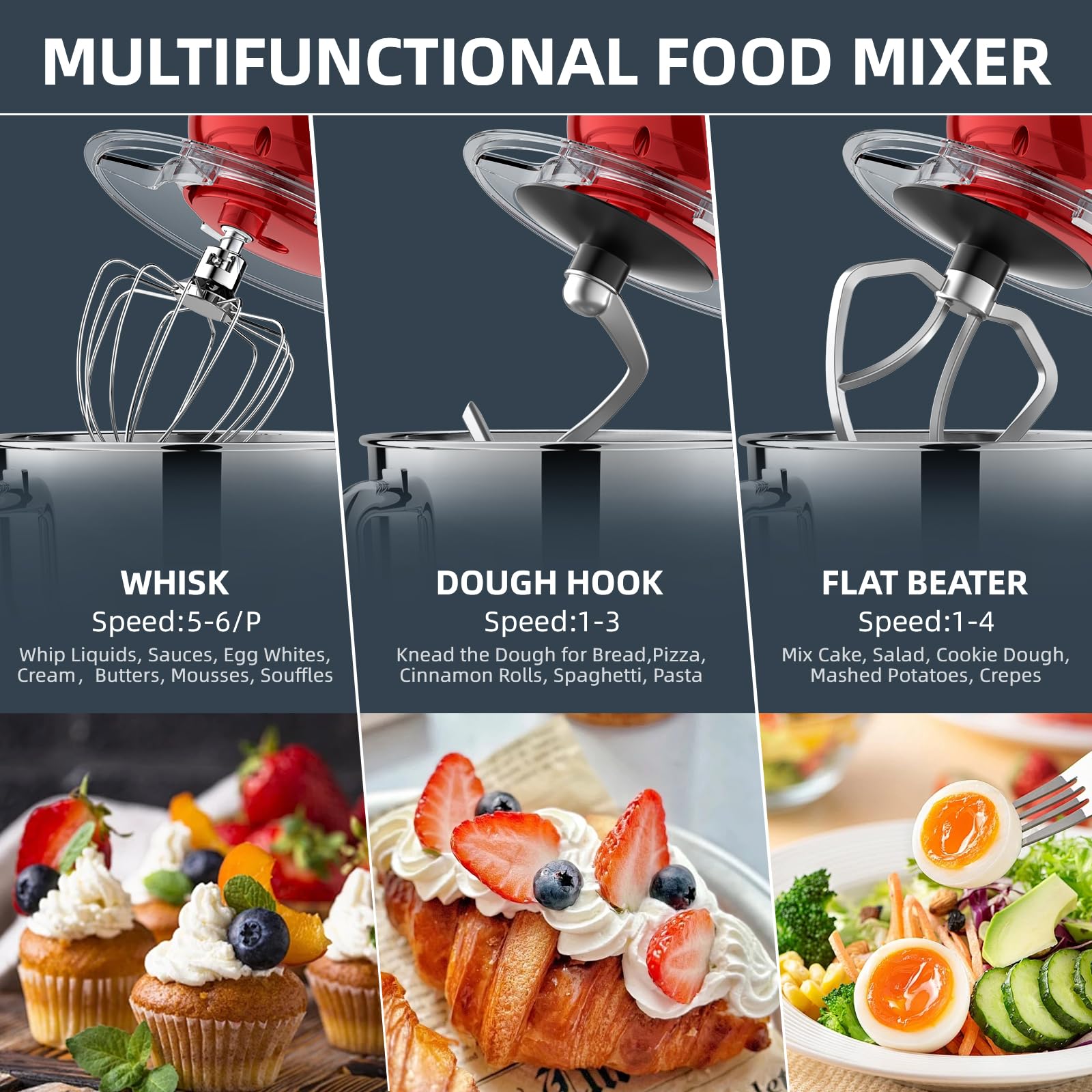 - 🍰【6+P GESCHWINDIGKEITEN FÜR JEDES REZEPT】 Der elektrische teigknetmaschinefür die Küche wird mit 3 Aufsätzen geliefert (Knethaken, Rührbesen, Schneebesen), die Vielseitigkeit für jede Aufgabe bieten, vom Mischen bis zum Aufschlagen. Verfügt über 6 Einstellungen zum sanften Kneten, gründlichen Mischen und zügigen Aufschlagen (P-Modus), geeignet zum Mischen von Kuchen, Keksteig, Fudge oder Kartoffeln oder zum Kneten des Teigs für Brot, Pizza oder Zimtrollen.